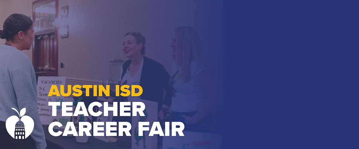 Join us for the 2026 Austin ISD Teacher Career Fair, Saturday, April 11 from 9 a.m. –Noon. Meet campus Principals, make connections, and learn what it means when you call Austin ISD home. Learn more >